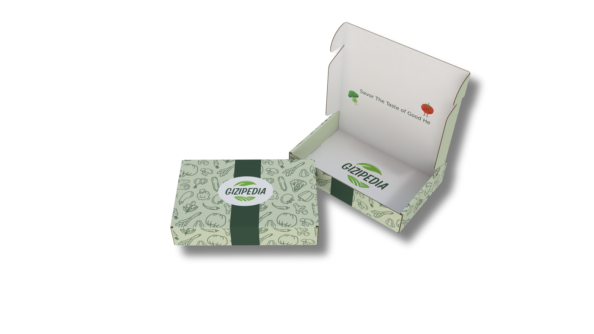 Scan the QR code, download & install Gizipedia, open the AR camera and point at the Gizipedia logo inside the box, reveal and change foods